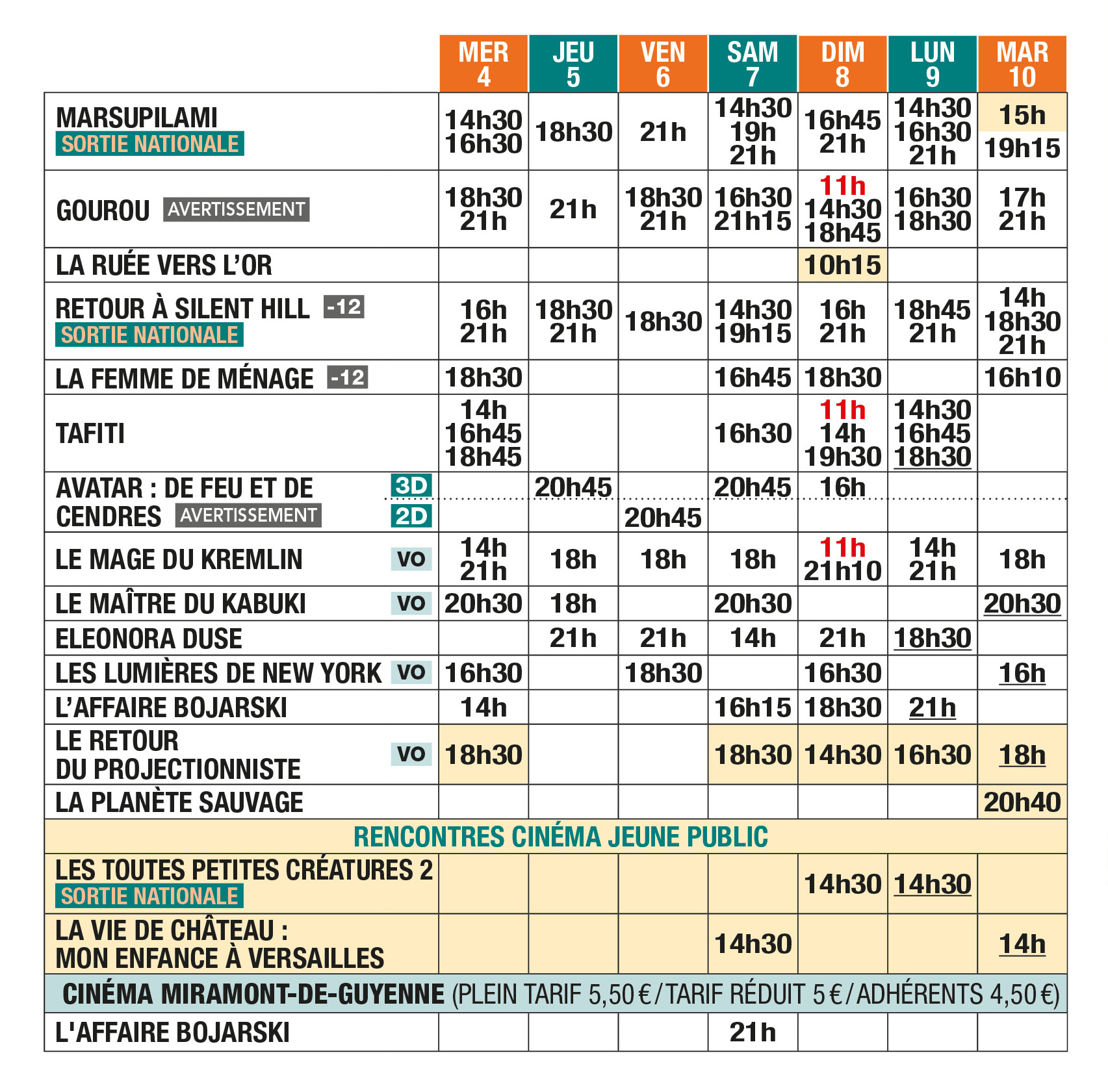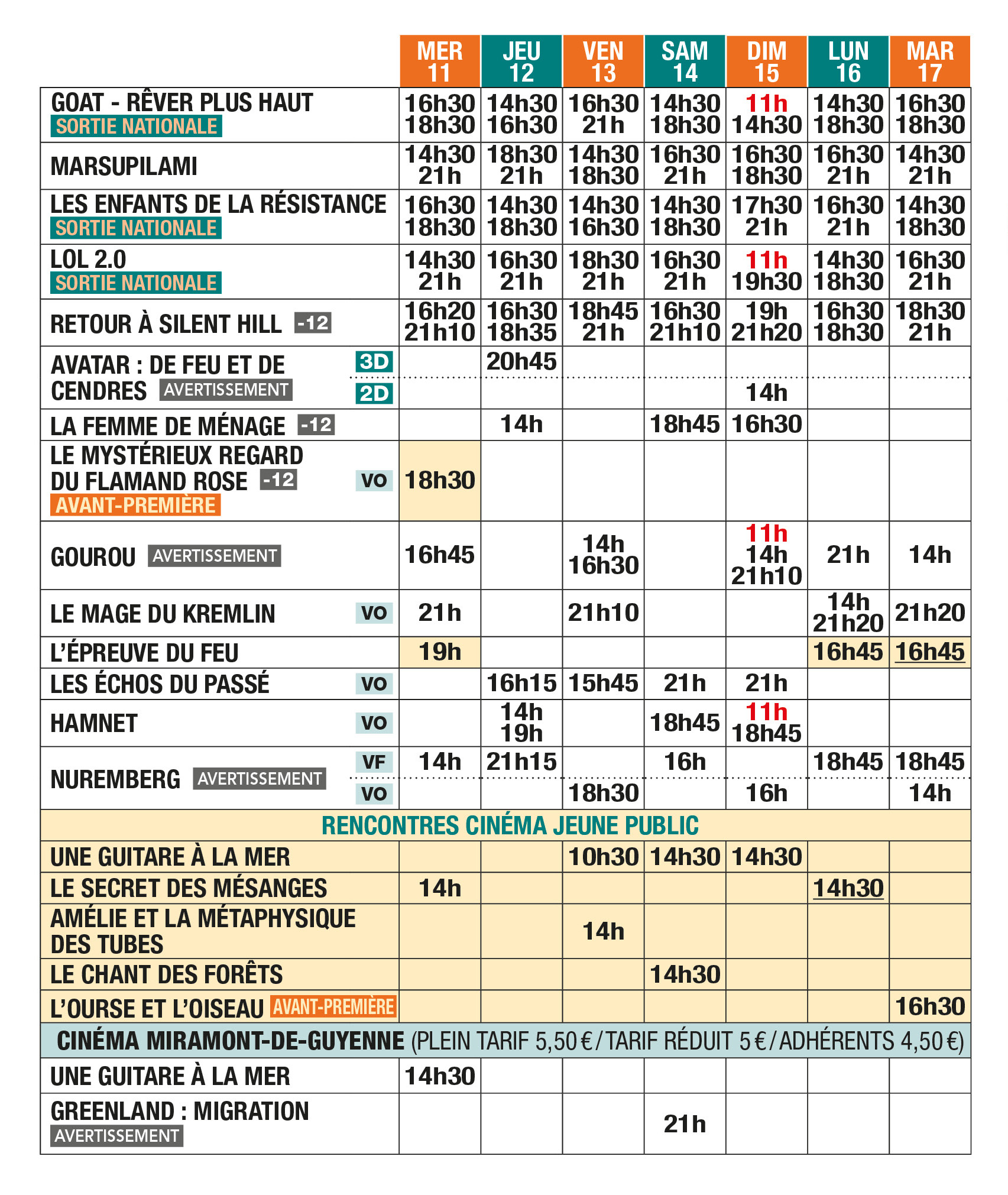 Bonjour, LE PROGRAMME du 4 au 17 février 2026 est là (dans l’onglet PROGRAMMES PDF et Grilles Horaires ci-dessous).
